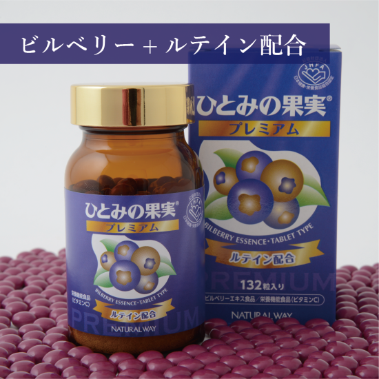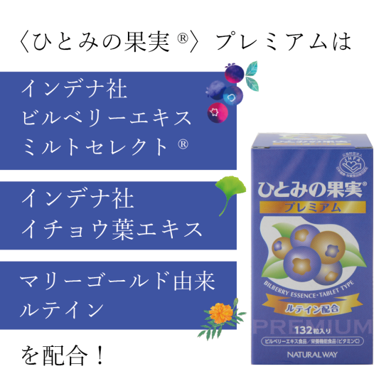 新しくマリーゴールド色素ルテインを配合した、これまで以上に上質な「ひとみの果実®プレミアム」ができました。