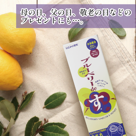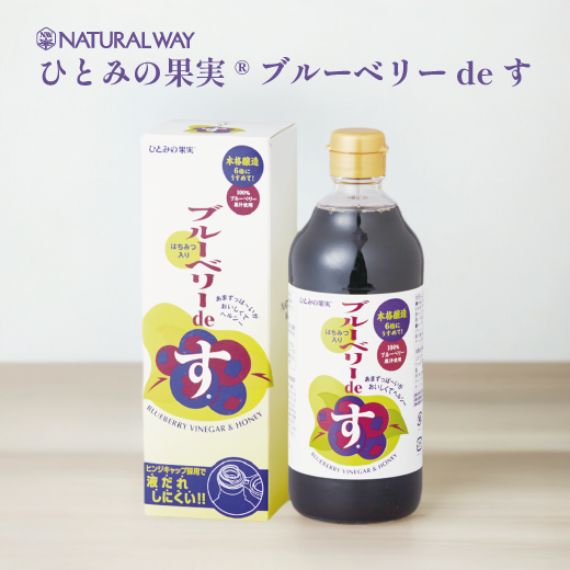 〈ひとみの果実®〉ブルーベリーdeすは、ブルーベリー果汁100%を丁寧に醸造したブルーベリー果実酢とハチミツだけで作った無添加ドリンクです。