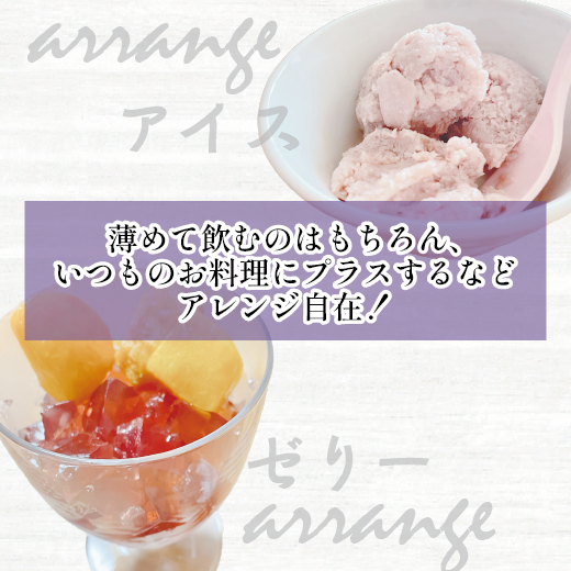 飲むだけでなく、お料理に使ったり、デザートにかけたりと、使い方はさまざま。