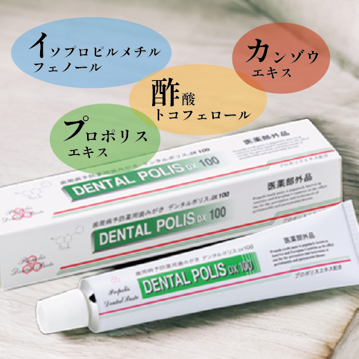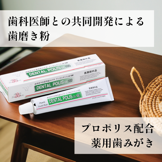 歯科医との3年に及ぶ共同研究によって、日本で初めて誕生した、プロポリス配合の薬用歯みがきです。