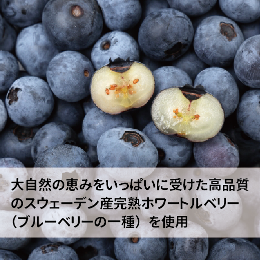 北欧産のブルーベリー(ビルベリー)にカシスとアスタキサンチンを加え、スッキリ美味しく仕上げた健康飲料です。