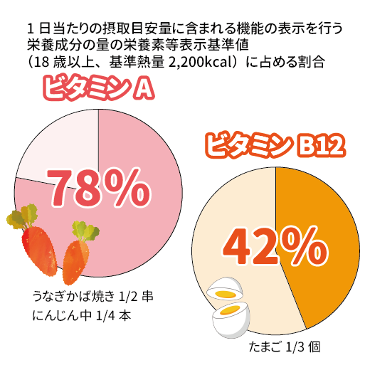 ビタミンA/78% ビタミンB12/42% 葉酸/83% ビタミンC/35% ビタミンD/182%